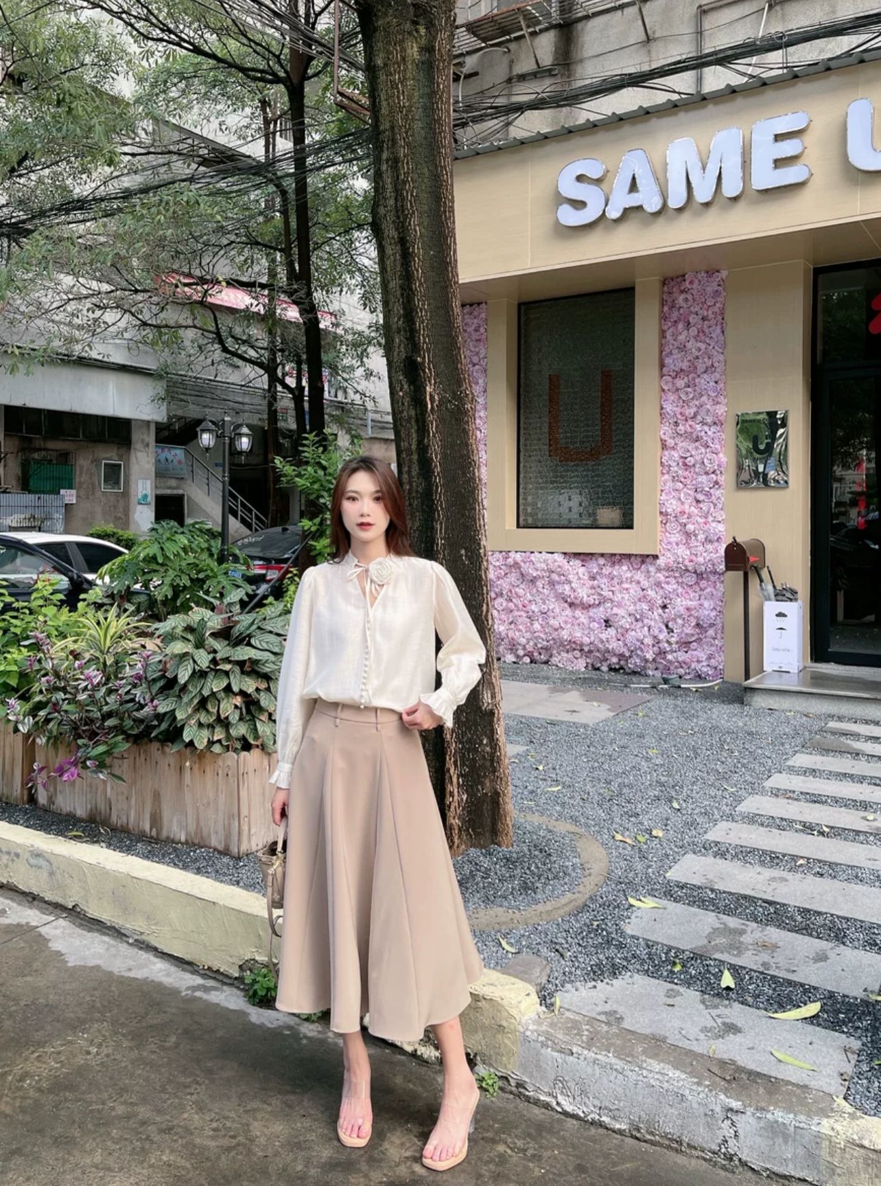 Em có chân váy ni các chị nhé